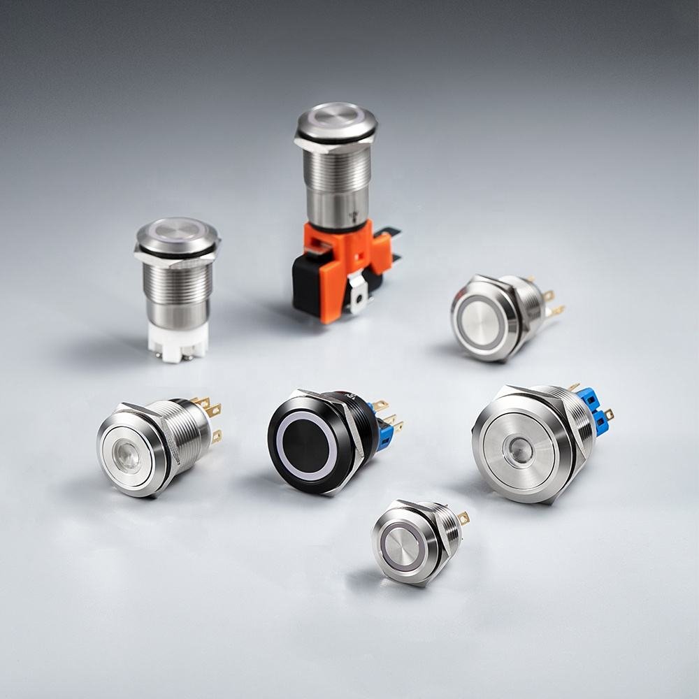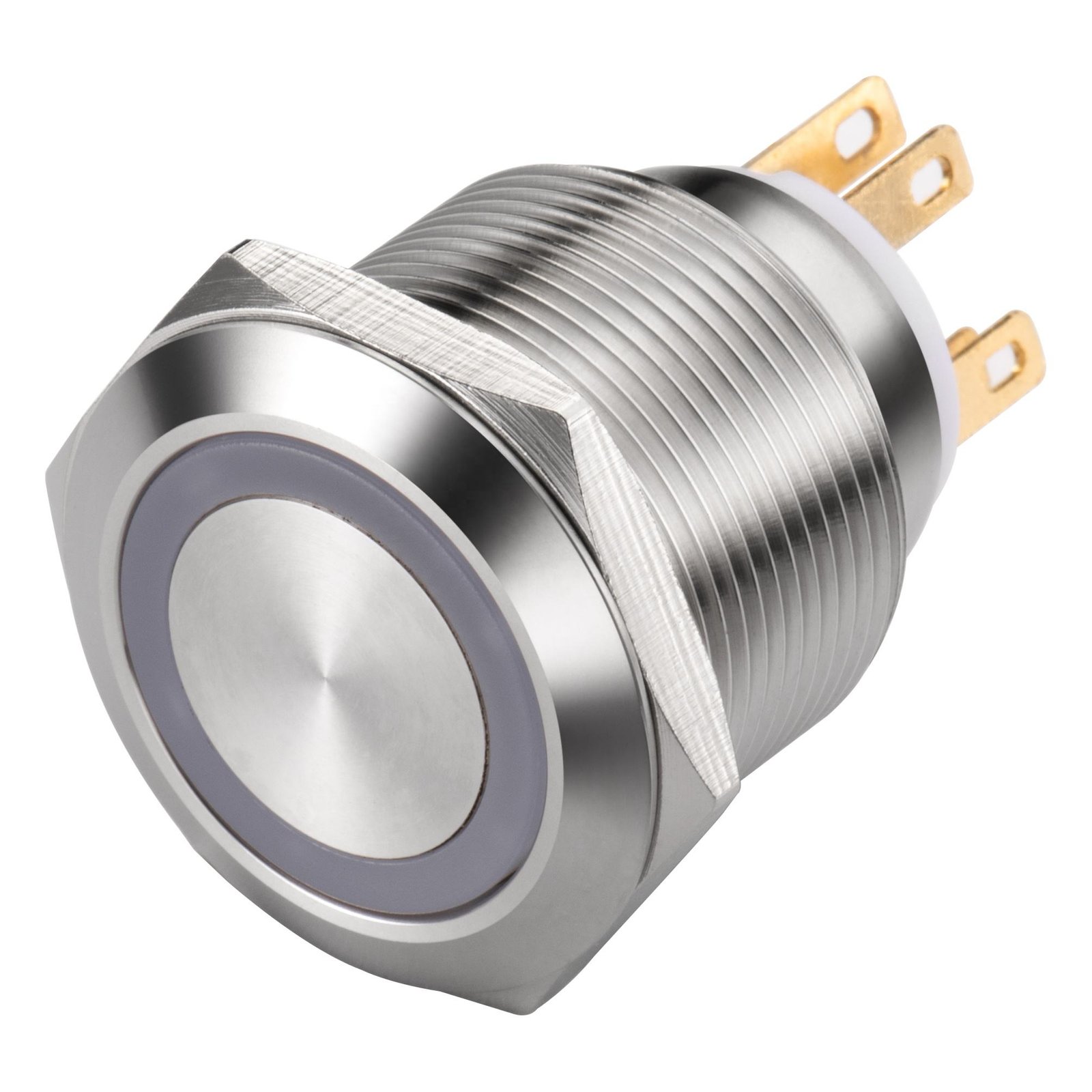 Hot Sale Stainless Steel Latching Explosion Proof Pin Terminal Push Button Switch 24V Blue Ring LED 22mm Dia 22mm 5A/ 250VAC 5A