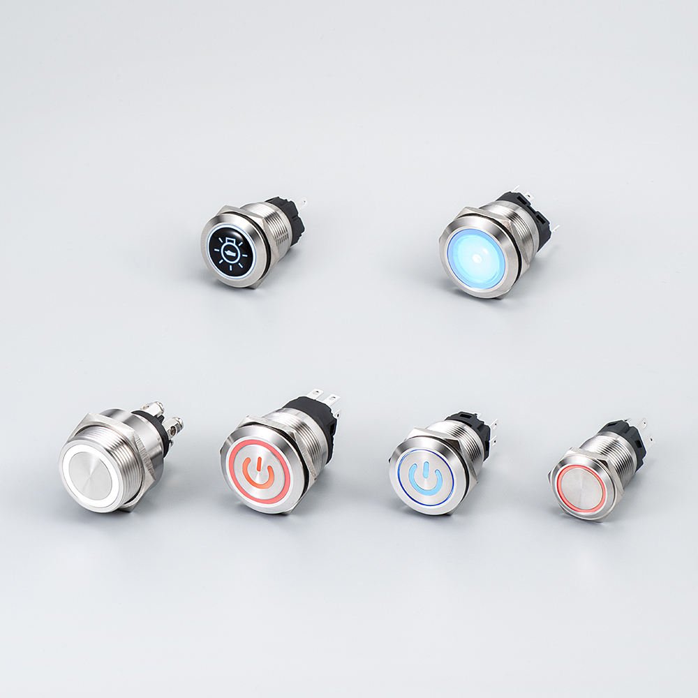 12/16/19mm kulatý uzamykatelný LED tlačítkový spínač 12V 20A nerezová ocel a plast momentální západkový kovový spínač