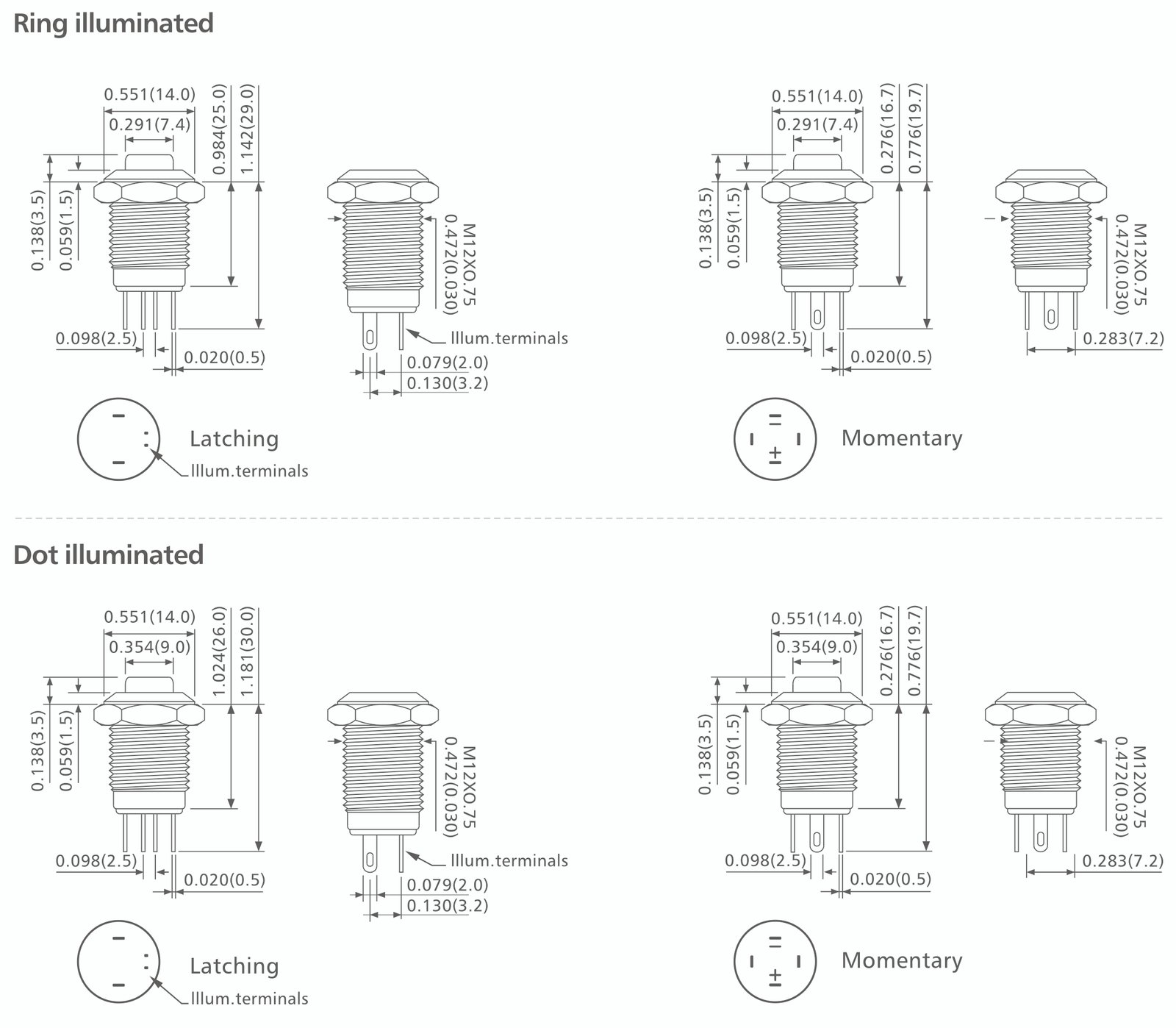 Momentary Piezo Switch Micro Mini IP68 Waterproof Push Button Stainless Steel 12mm Nc Push Button Switch Control High Flat Head