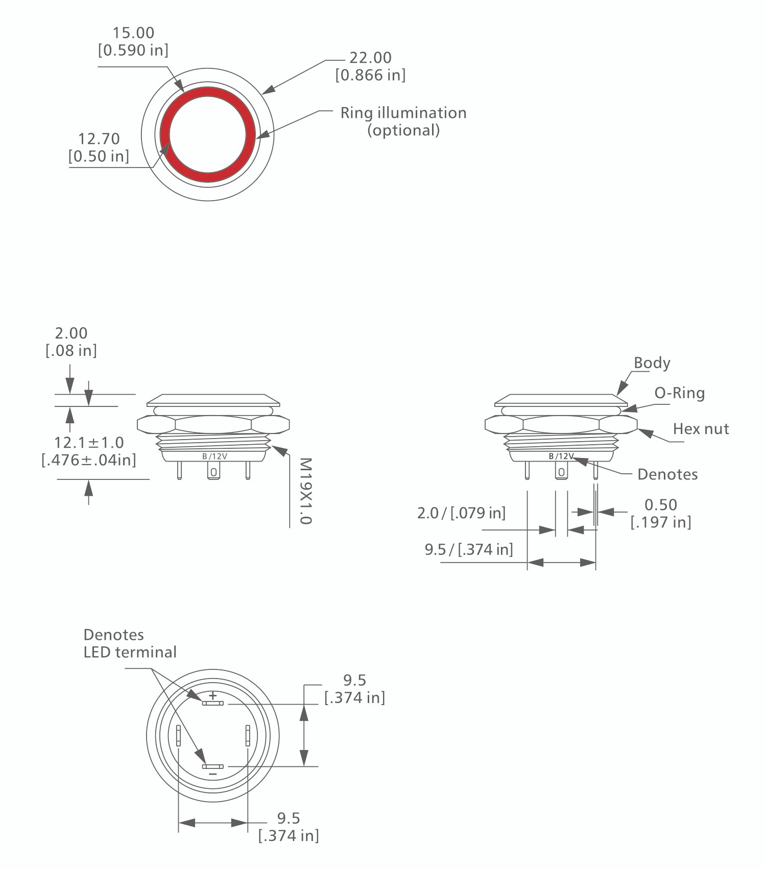 Mounting Hole Size:Dia 19mm 22mm 25mm