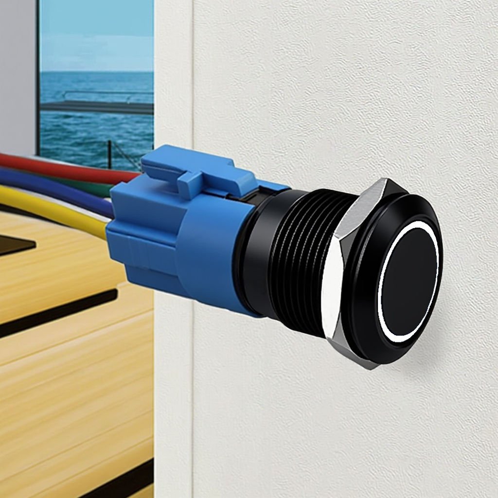 LANGIR Einrastender Ein-Aus-Schalter 12mm Edelstahl 24mm Ring Led Drucktaste Elektrischer Schalter Vandalensicherer Einrastschalter