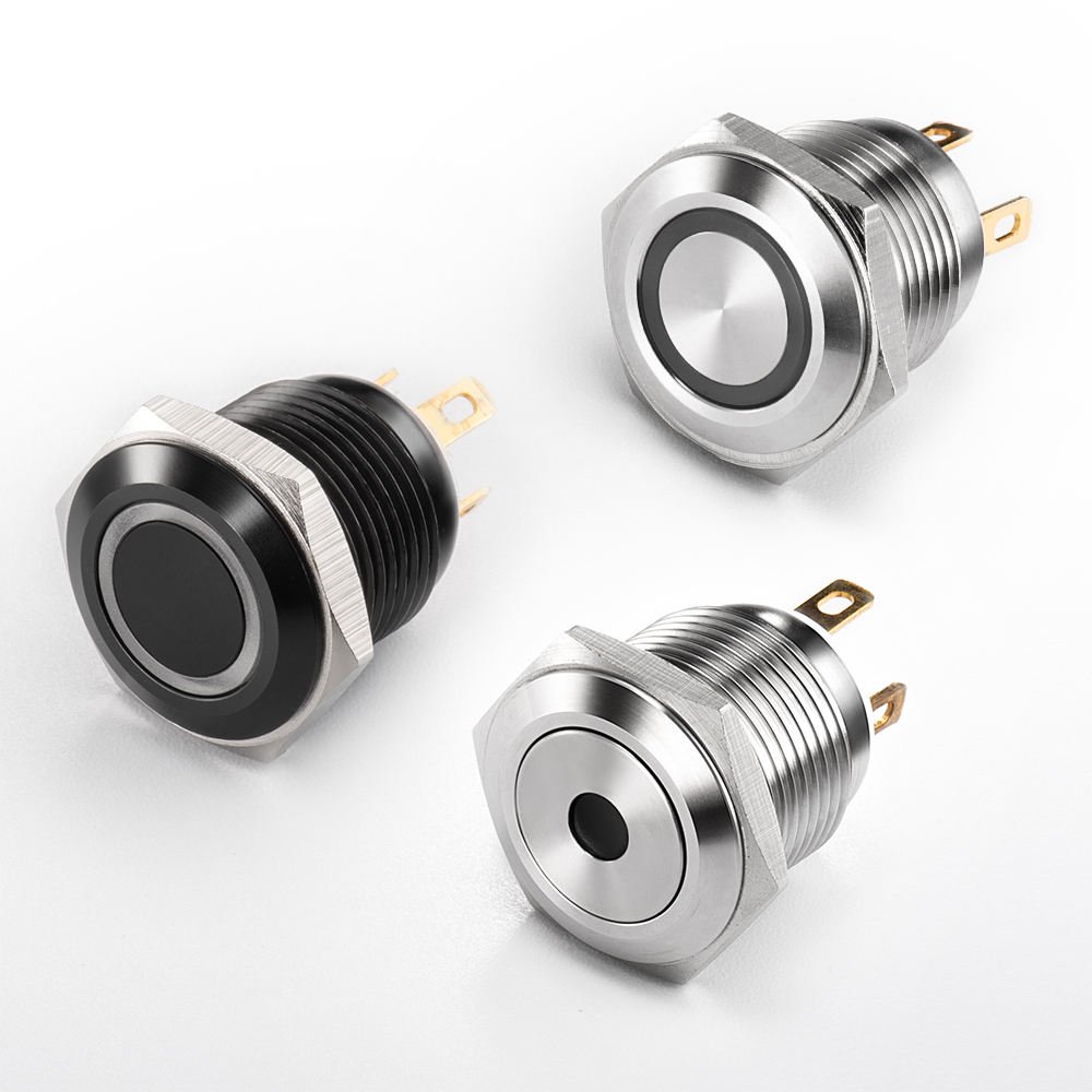 12/16/19 / 22mm Sakelar Tombol Tekan Logam Sakelar Penguncian Sesaat Listrik Tetap Hidup Mati Hidupkan Mati Lampu LED 3V 6V 12V 24V 220V