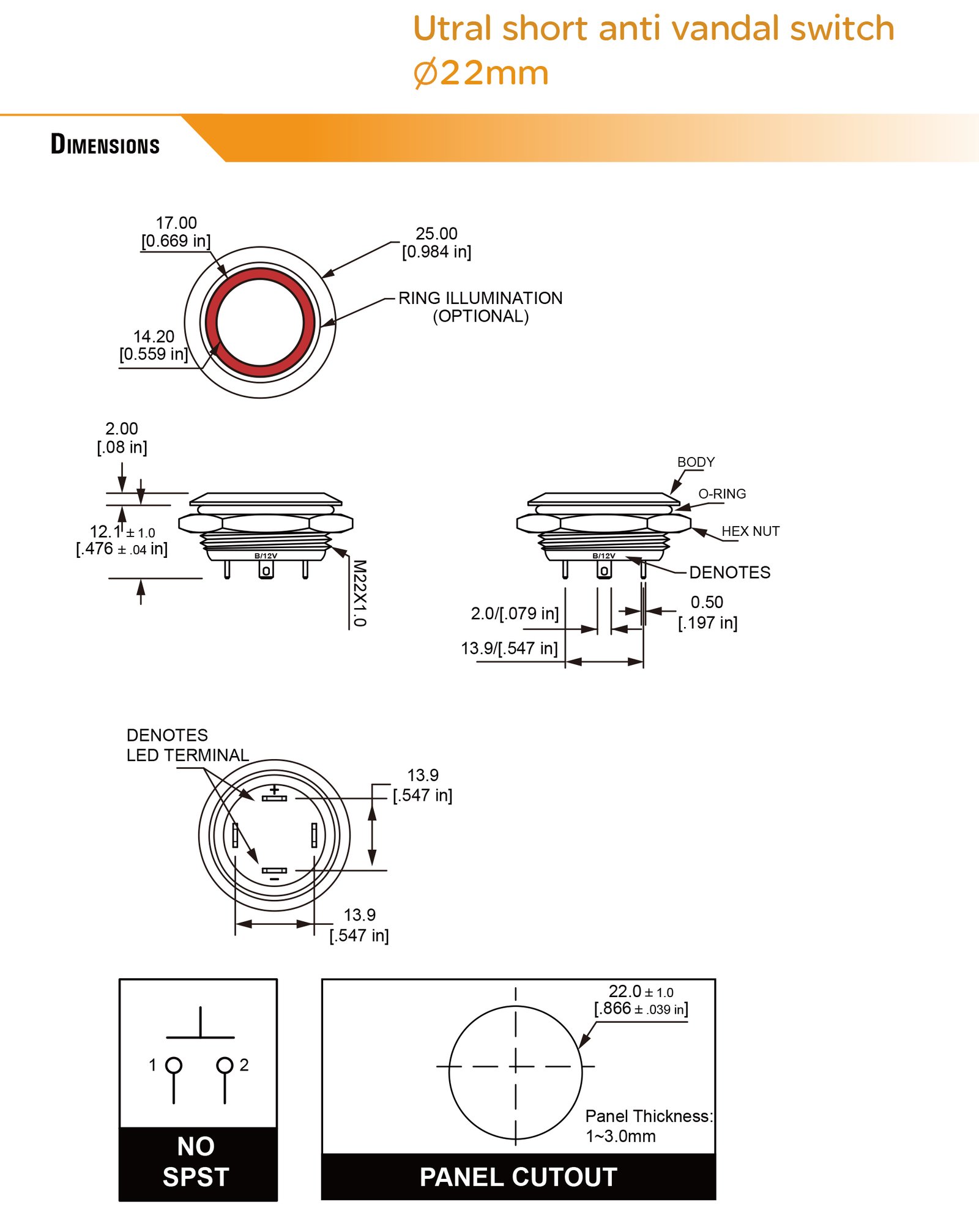 Langir Waterproof IP67 12V Stainless Steel Momentary NO Illuminated Button Switch Ring Illuminated 1NO Switch Combination
