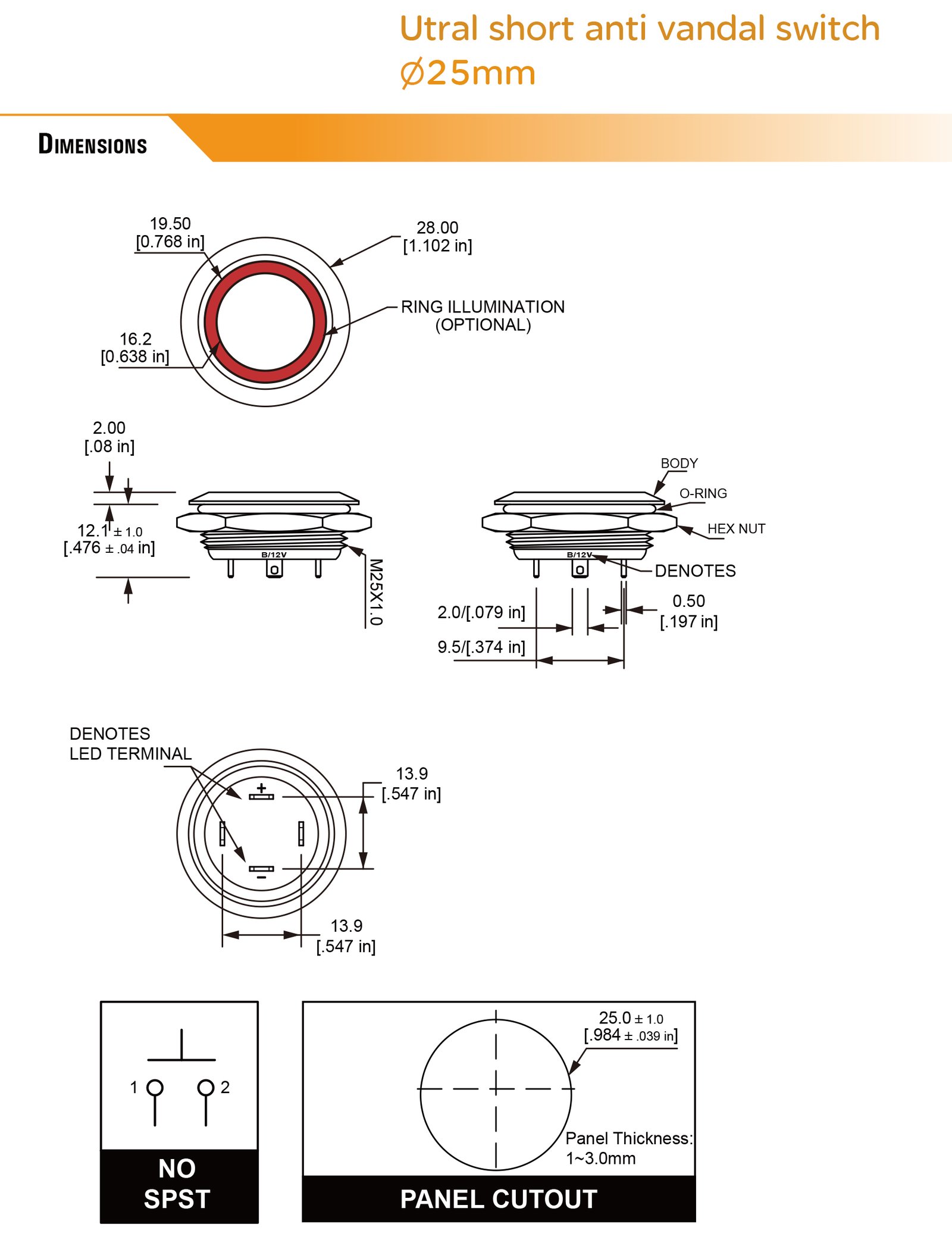 Langir 12V IP67 Waterproof Stainless Steel Illuminated Button Switch 1NO Momentary NO Ring Aluminum Brass Electronic Plastic NO