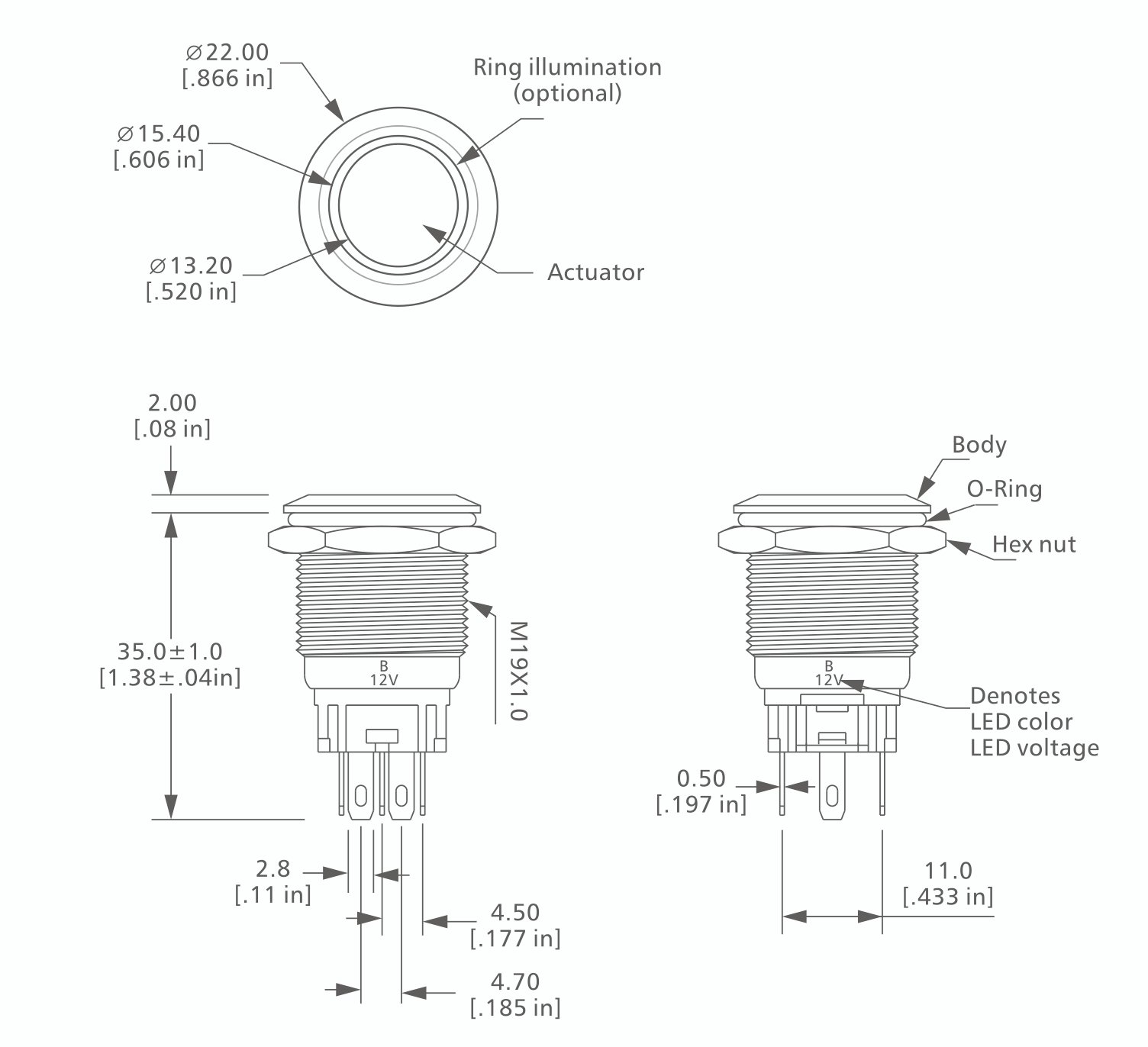 제품명:19mm 푸시 버튼 스위치