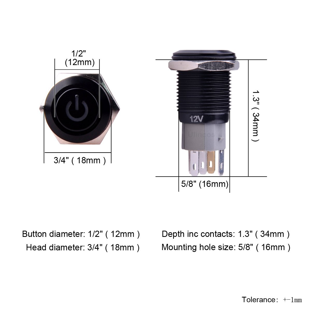 16mm Waterproof LED Switch with Caption SPDT ON/Off Black Metal Push Button Switch Made of Durable Plastic