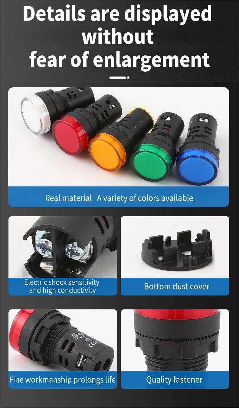 22mm Panel Mount LED Power Lamp with Indicator Light Signal 12v 24v 110v 220v Plastic Material Pilot Lamp