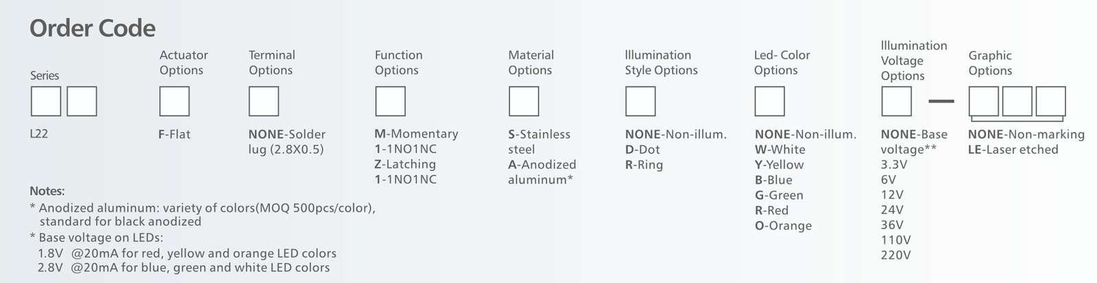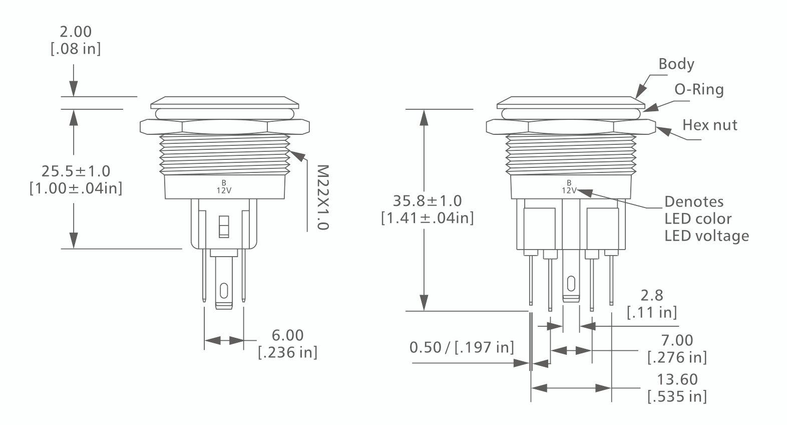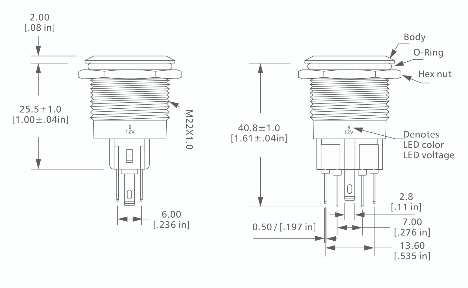 Mounting Hole Size:12mm/16mm/19mm/22mm/25mm/30mm