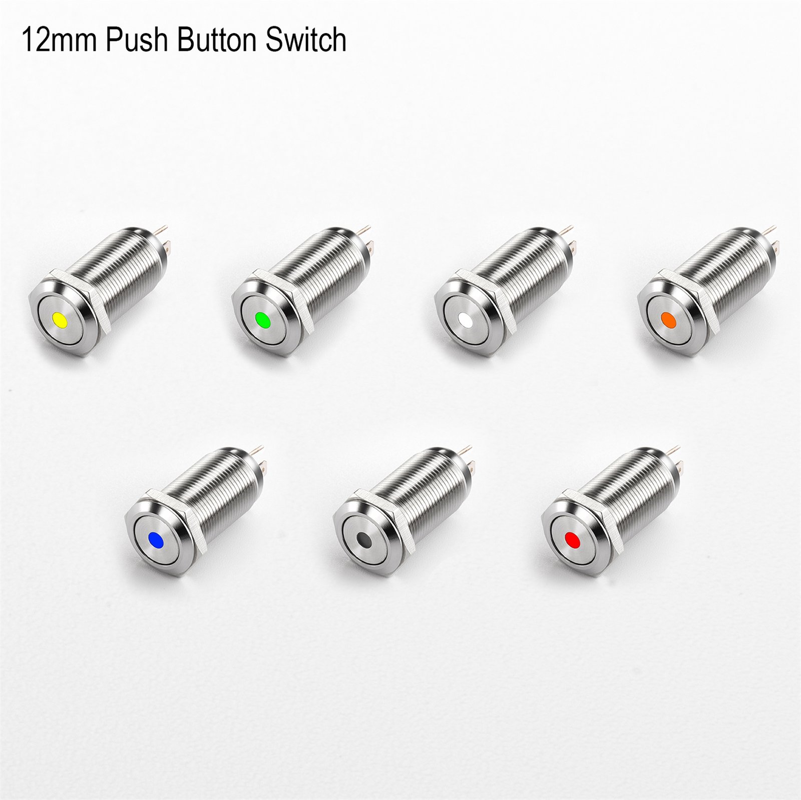 12mm 2pins Waterproof IP65 Reset Push Button 12v Domed Head Switch Push Button for Toy Car Momentary Plastic Push Button Switch