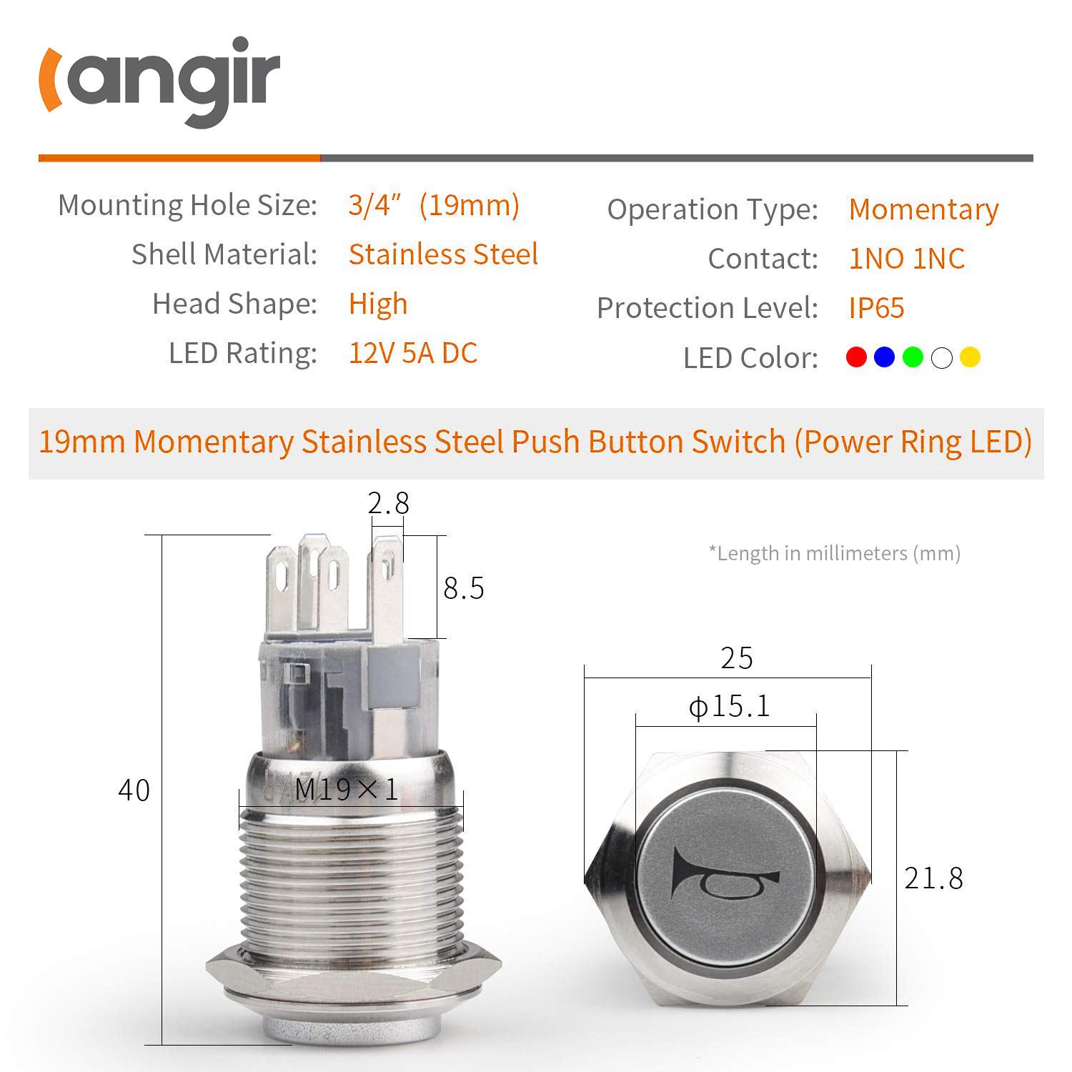 Mounting Hole Size:12mm/16mm/19mm/22mm