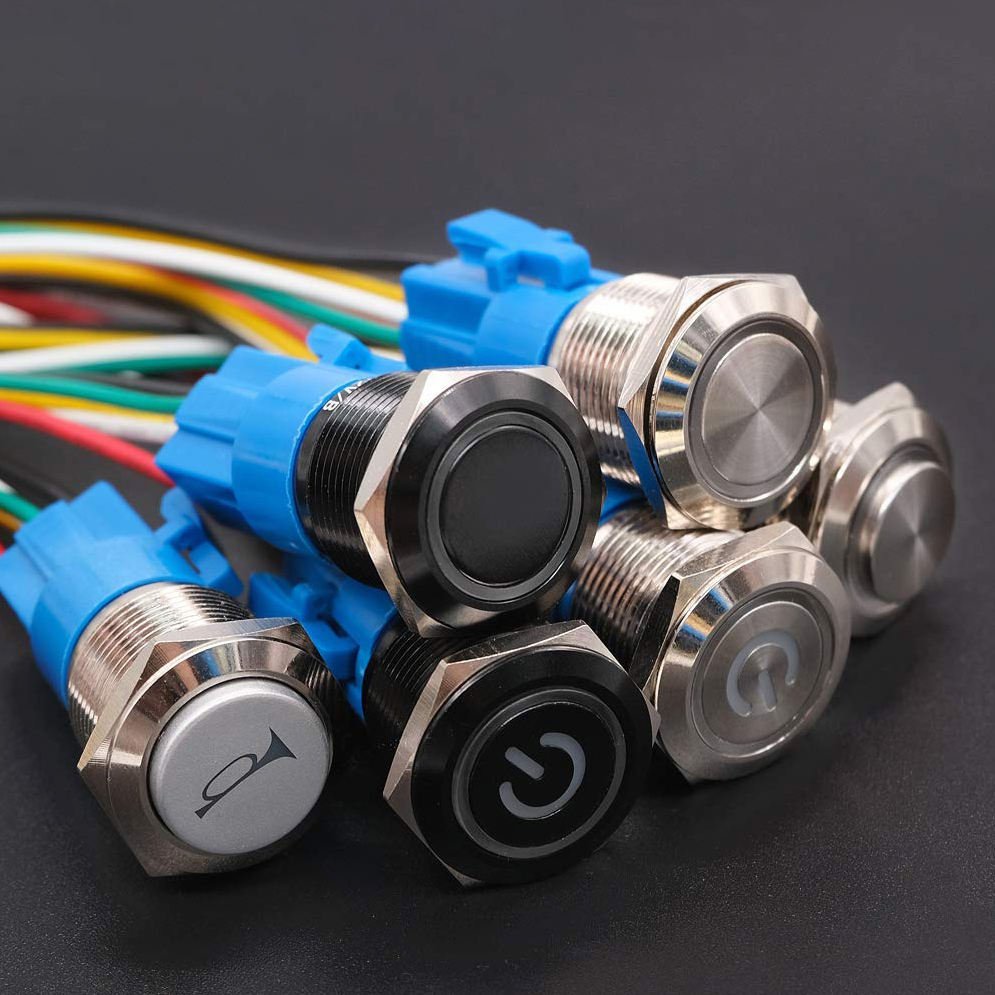 Langir 12/16/19/22mm Latching Black Metal Push Button Switch logo Customizable Self-reset Doorbell Switches Waterproof