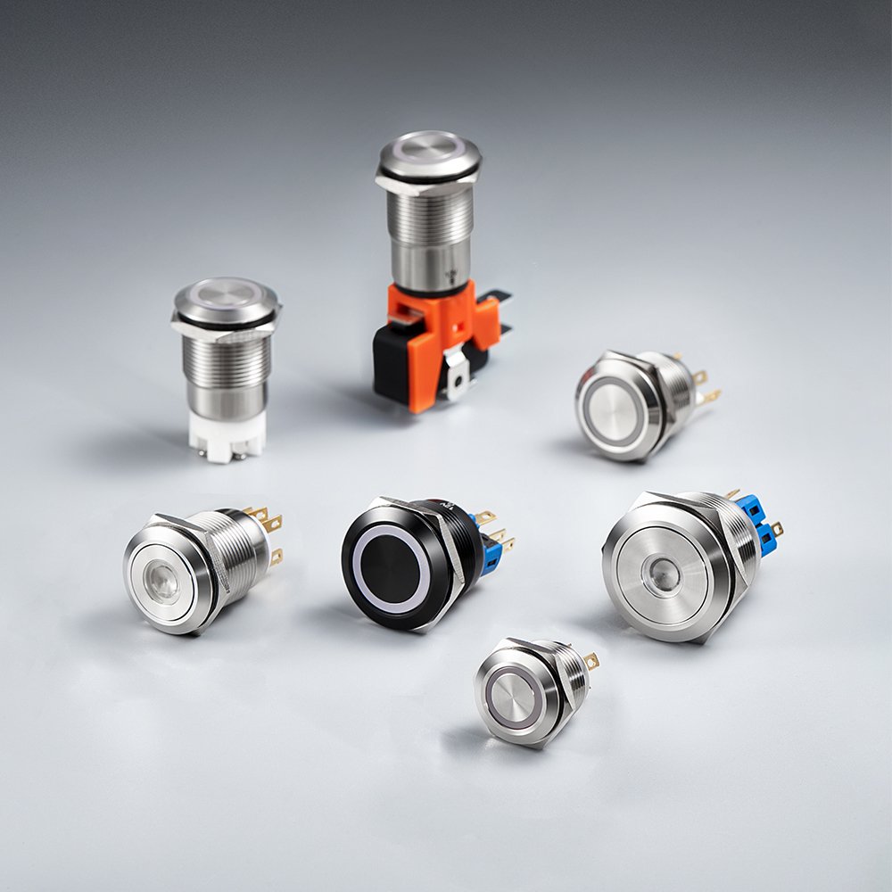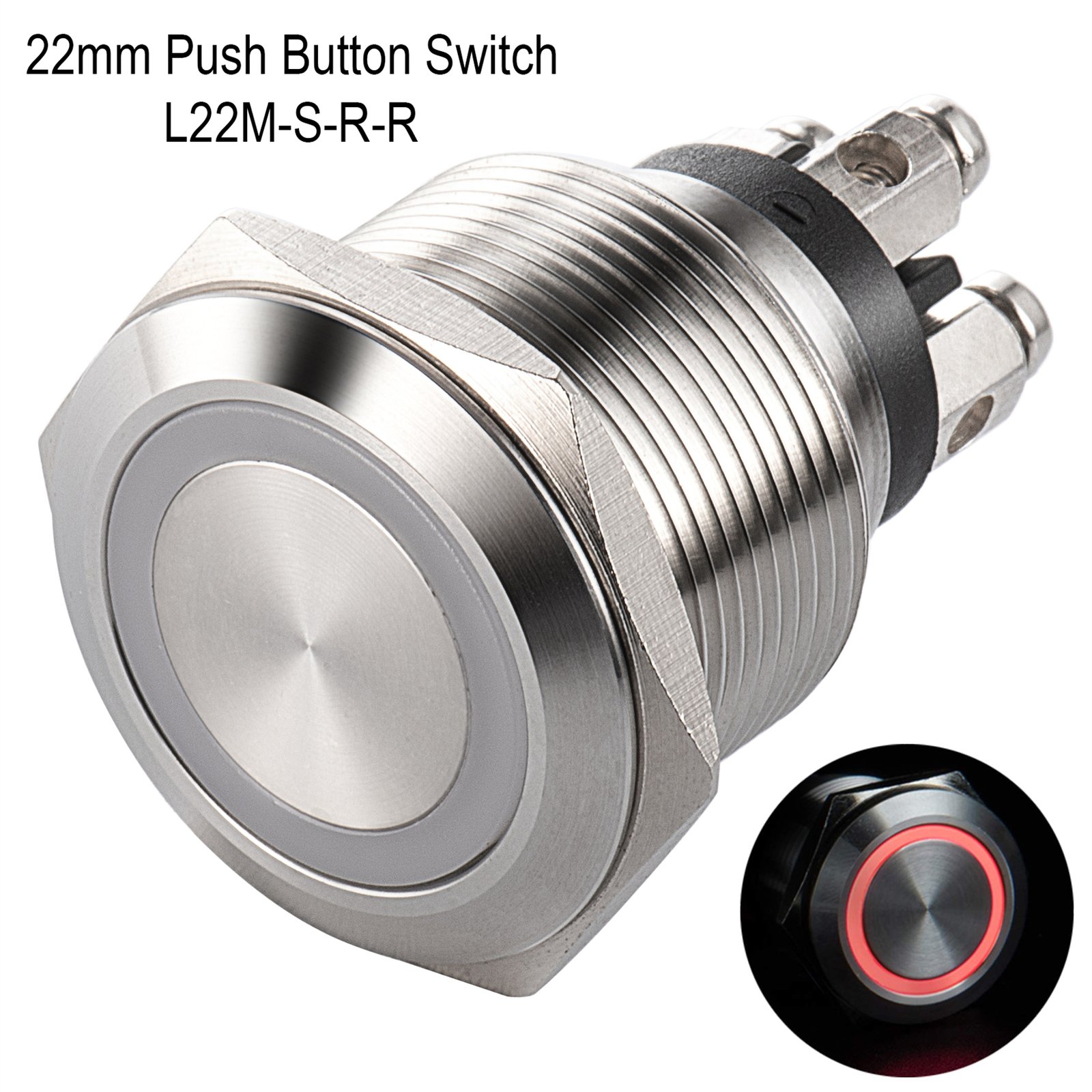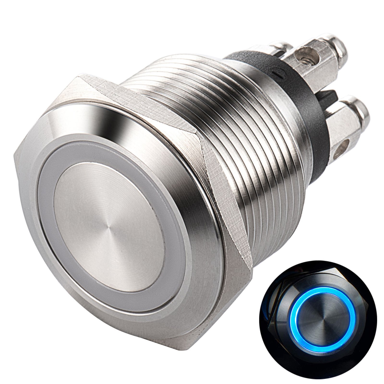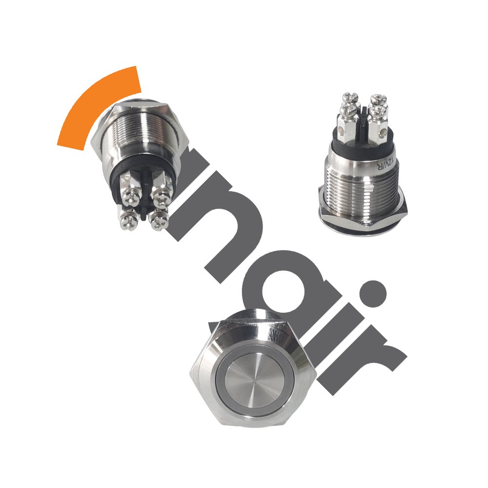 22mm Motorcycle Switch Metal Led Light Industrialwaterproof Momentary Push Switches Button 4 Pin Terminbal Control Flat Head