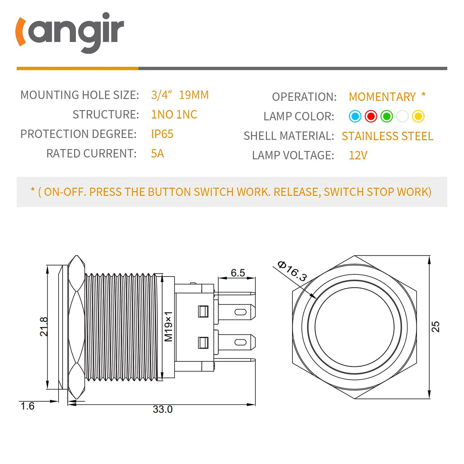 Operation type:Momentary/Latching